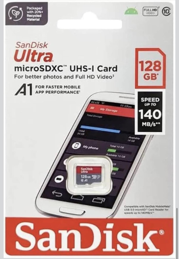 SanDisk Ultra 128GB microSDXC UHS-I, 140MB/s R, Memory Card, 10 Y Warranty, for Smartphones