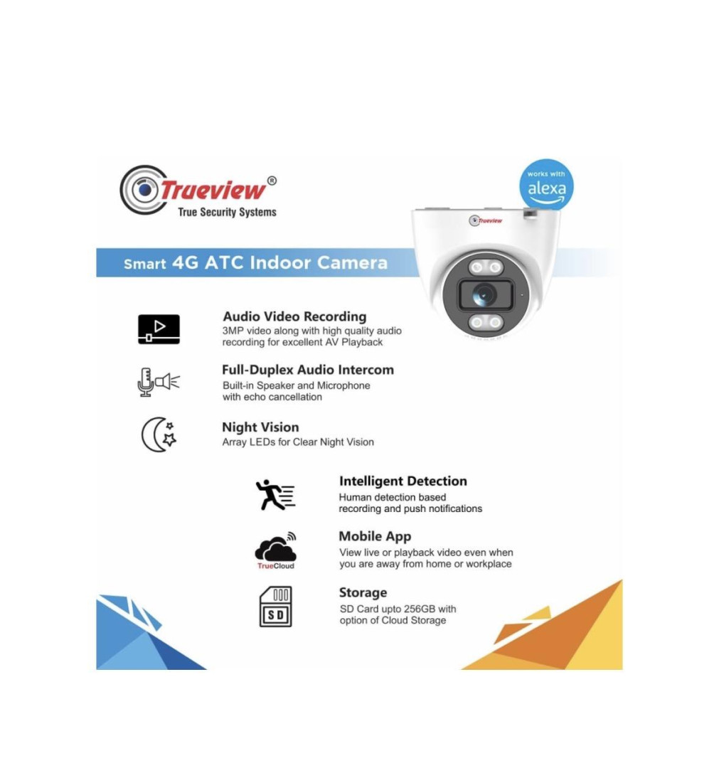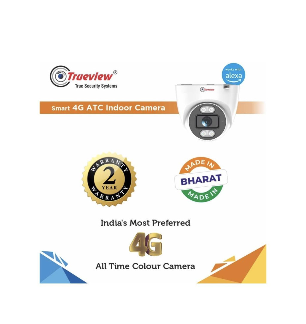Trueview Smart Security Camera 4G 3mp CCTV Dome Camera for Home | Shop | Office | Farm | Construction Site | Sim Based Camera (4G Sim Based 3MP 1296p HD with 4 IR LED)